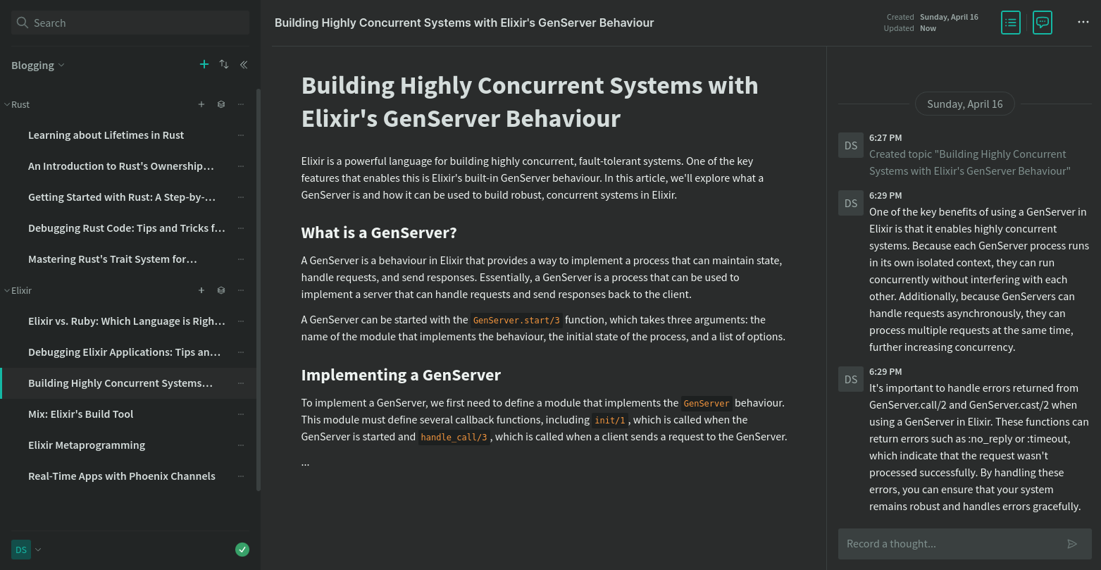 Knopic is a next-generation personal knowledge management web app that unifies Documents and Thoughts under a single platform. With its hierarchical Topic organization, optimized note-taking features, lightning-quick search, and personalized quiz generator, Knopic ensures that you can create, organize, and retain knowledge with ease.